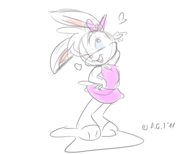 A naughty snow-white moon bunny with fluffy cotton tail and pink underwear,also she's my GF ^.^