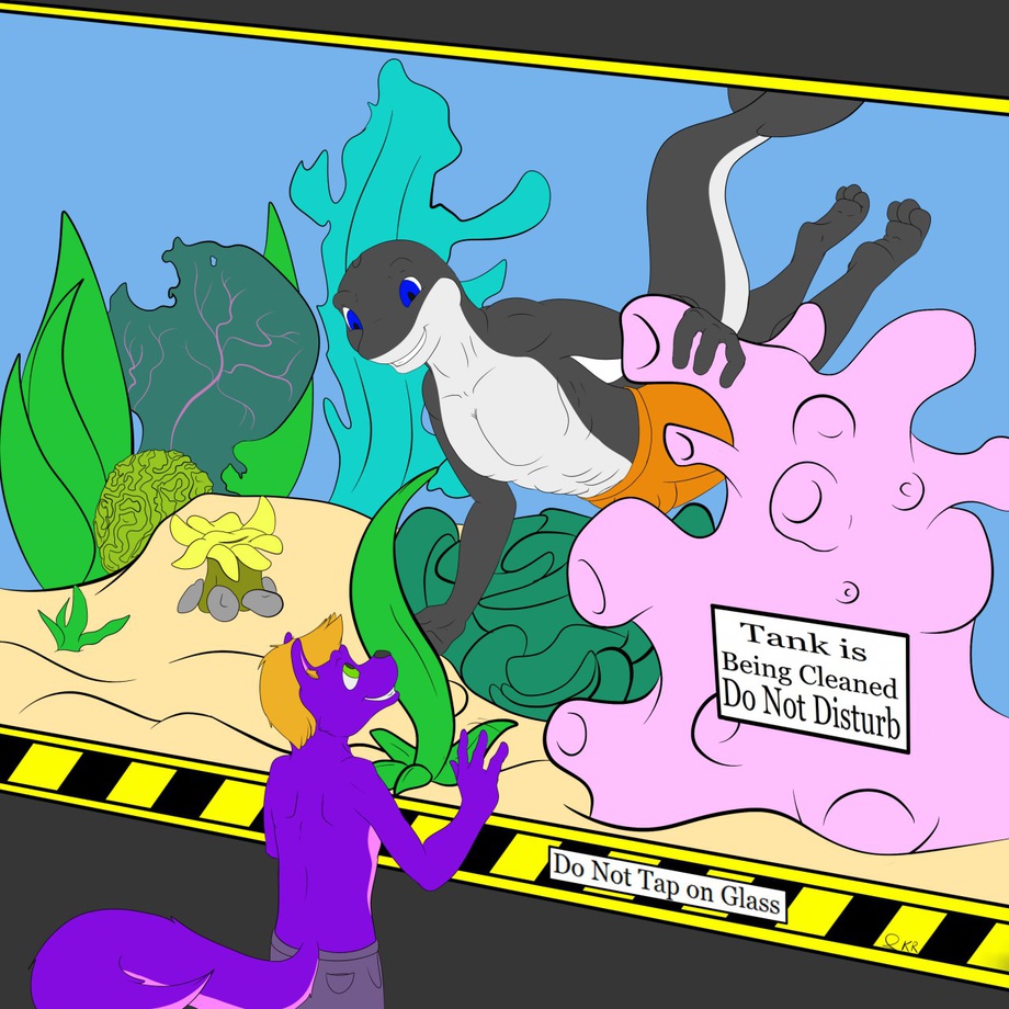 He has a unexpected visitor while he is cleaning one of the tanks :3