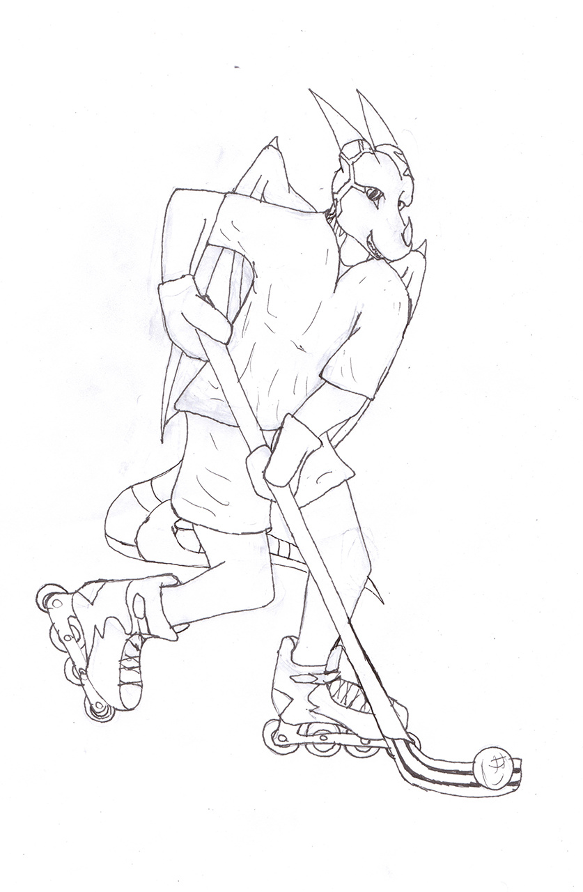 Most people dont know I used to play in-line roller hockey. I did for nearly 8 years. It was a lot of fun. This is a sketch just to sorta attempt to relax before my Silviculture field final.