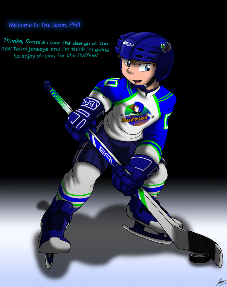 My new Puffins uniform has finally arrived, as mentioned in this submission! So here I am, at the arena, ready to play my first game with the Puffins!