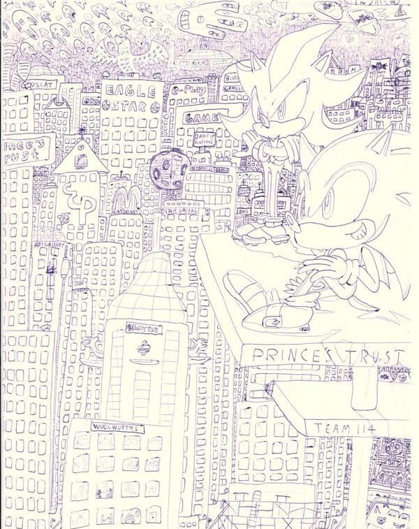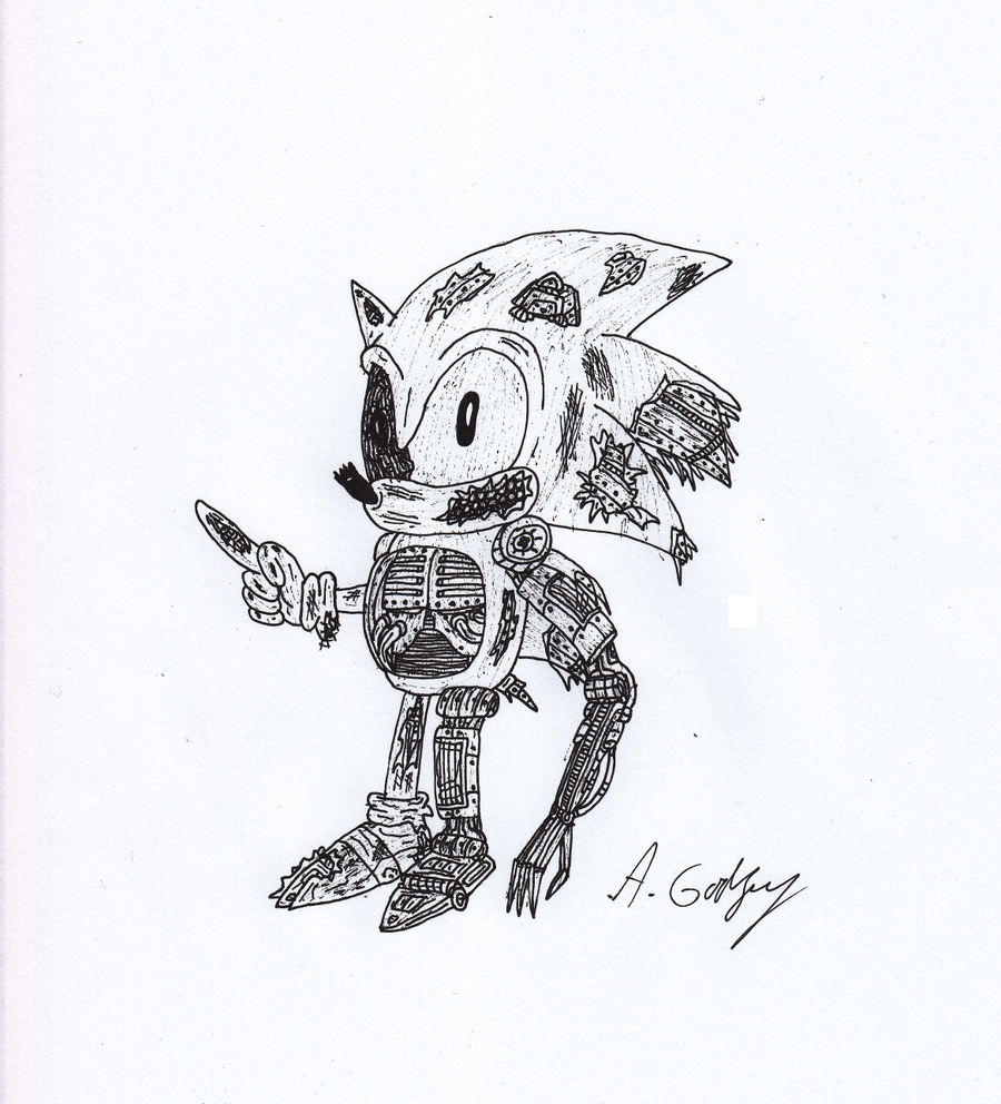 This was inspired by the original concept artwork for Epic Mickey. I was planning to turn this into a series where I'd draw all of the main Sonic and Mario characters as half-destroyed mechanical abominations but sadly gave up after two pictures. I might revisit this someday.