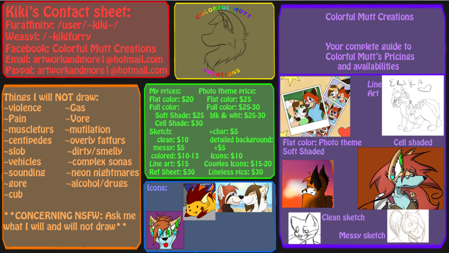 I do my prices based on detail, not full body, partial, headshot kind of stuffs. although there IS a price differece for NSFW commissions, Note me if you're interested with that info