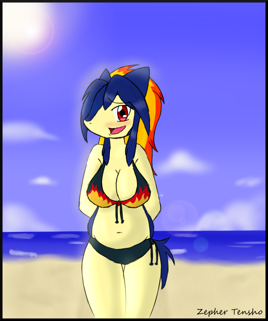 This started out as a “what if” picture of Janice as a Typhlosion, and I ended up making it into a full-blown beach scene.