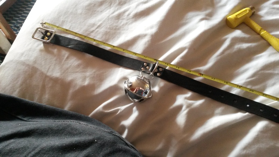 This is a basic collar I've made for any visiting pets, slaves, or otherwise unowned submissives that would visit my home.