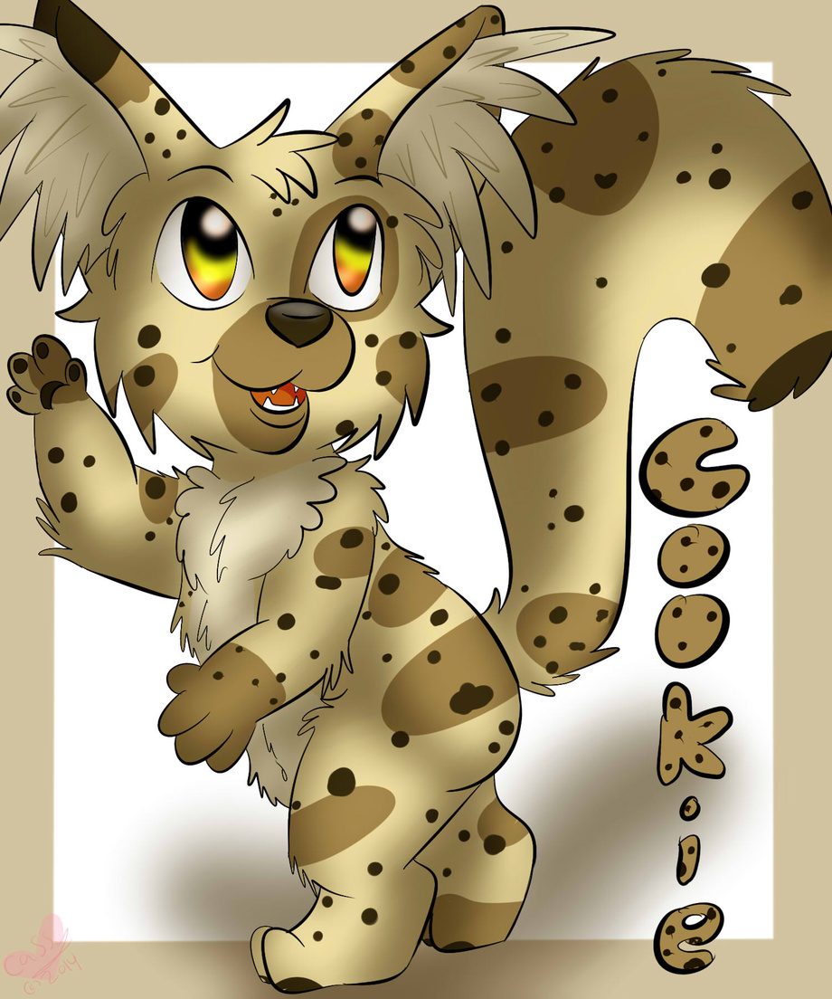 badge i made of my new oc Cookie! he/she is a fenda!!! a fennec fox / red panda hybrid.