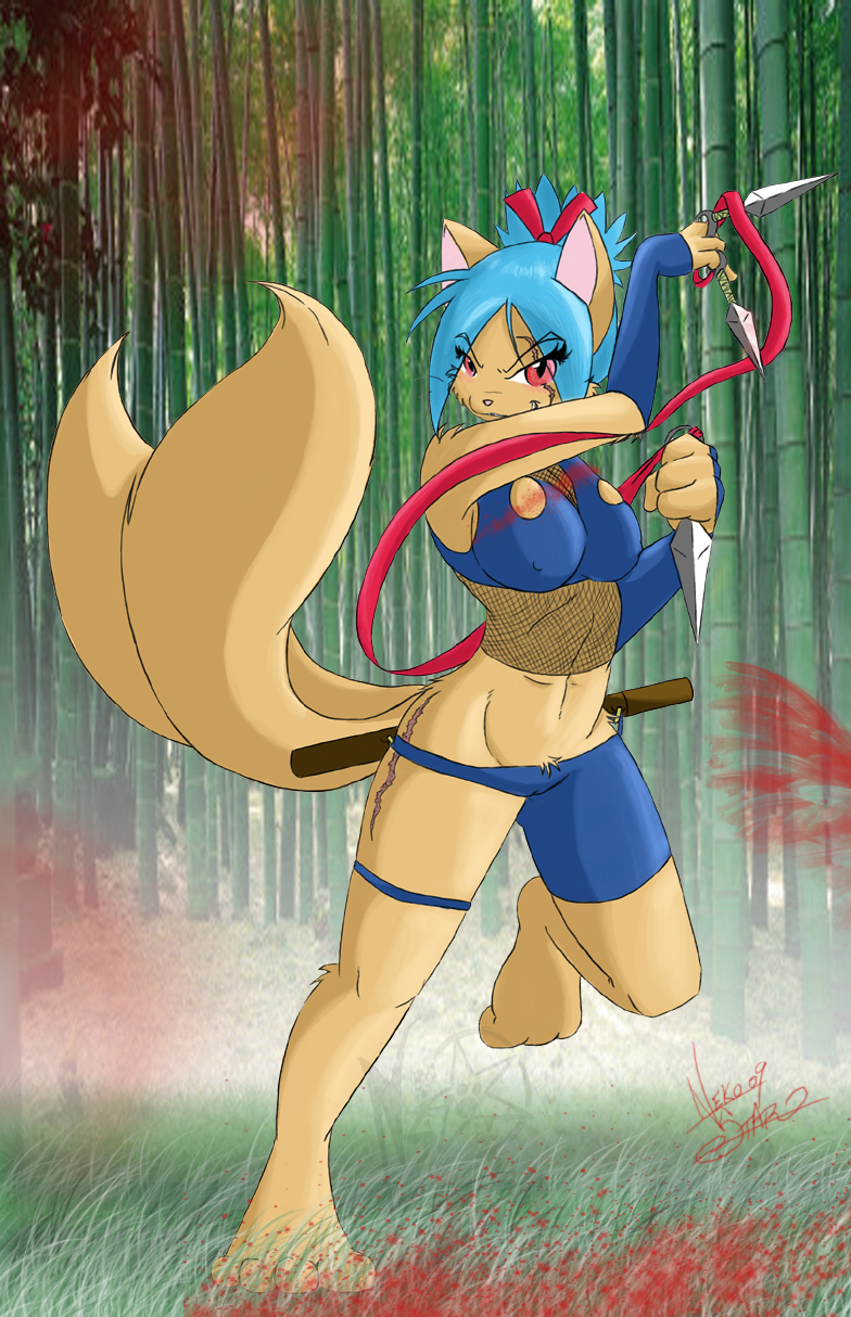 As Hanako got older, Kisuke taught Hanako survival skills, and how to live on nature's bounty. He taught her how to hunt, and how to sneak up on your prey. Kisuke also taught her the ninja's way of the sword. How to stay light, and on your feet. To never feel pain again. Hanako never had to use these skills however, but years passed and she kept practicing, becoming swift, and getting better than even kisuke with a blade. She continued to live her happy life, until one fateful night...