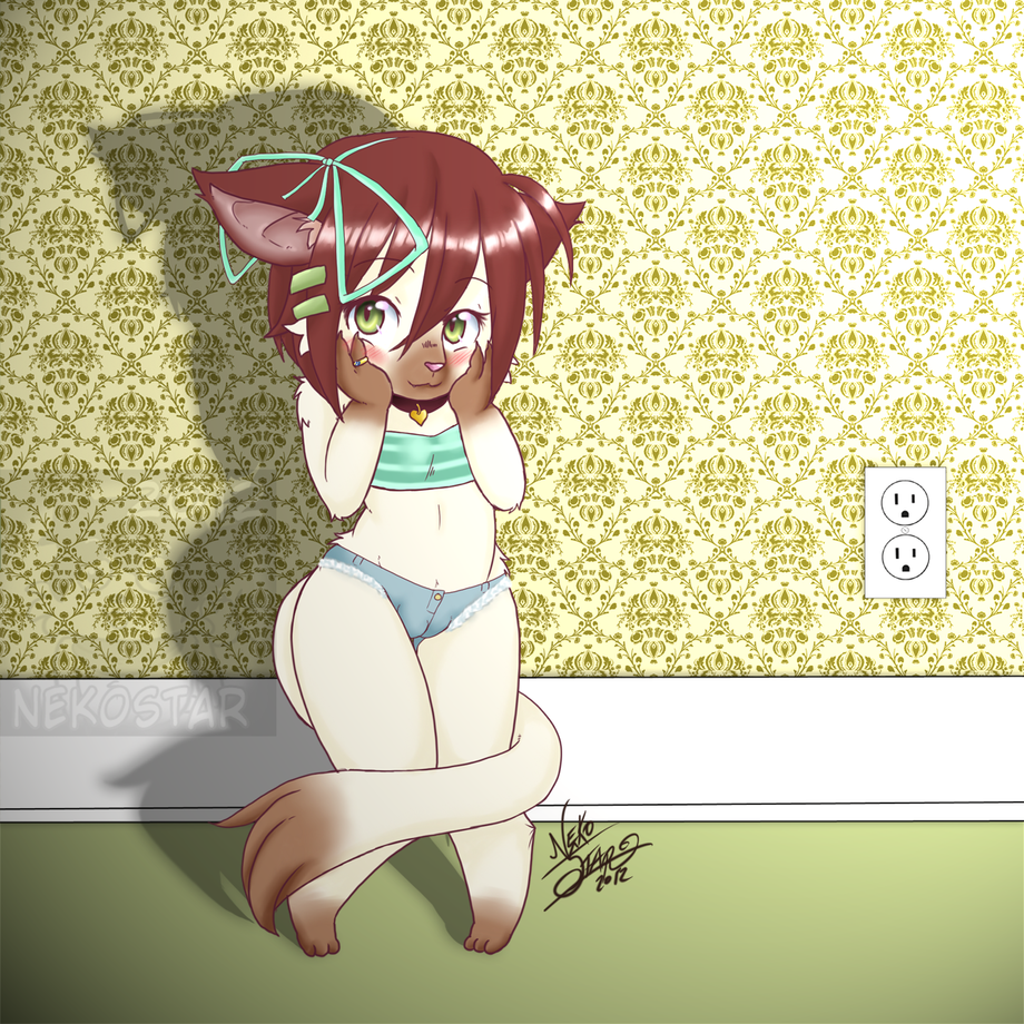 I'm probably going to alienate myself again, but I've always loved art by kemonono and Nakagami Takashi. Kemonono's doujinshis involve a 'cat wife,' where the human man got married, but his bride happened to be a cat. As he says "If you can take that literally, it should be ok." I thought it was TOO CUTE when she would be wearing an apron and cooking breakfast for him as he woke up, or meeting the cat's mother who is against the marriage etc. It's a fun story! So I finally set about making my own cat wife. This is Jenna! The Siamese cat wife. :3 I would say the idea was inspired by Kemonono, but the style was inspired by Nakagami Takashi. :3