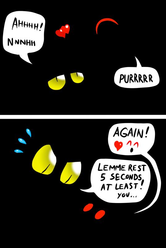 Two black cats in a coal mine deep underground during a blackout under a total solar eclips while covered in india ink! :D