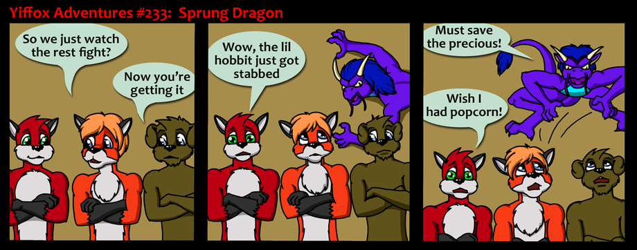 Go see next yiffox adventures posted on 5/9 and new Foe rules, so go see...no no wait, dont ...you arent ready for it...there's trolls...and blood, and sarcasm...but if your heart is mithriled for it... http://yiffox.com/yiffadven/ and really, why haven't you subscribed to this? why haven't you commented, or voted..yeah, vote there a sexy beetch waiting for you...no no dont...you arent ready for it...
