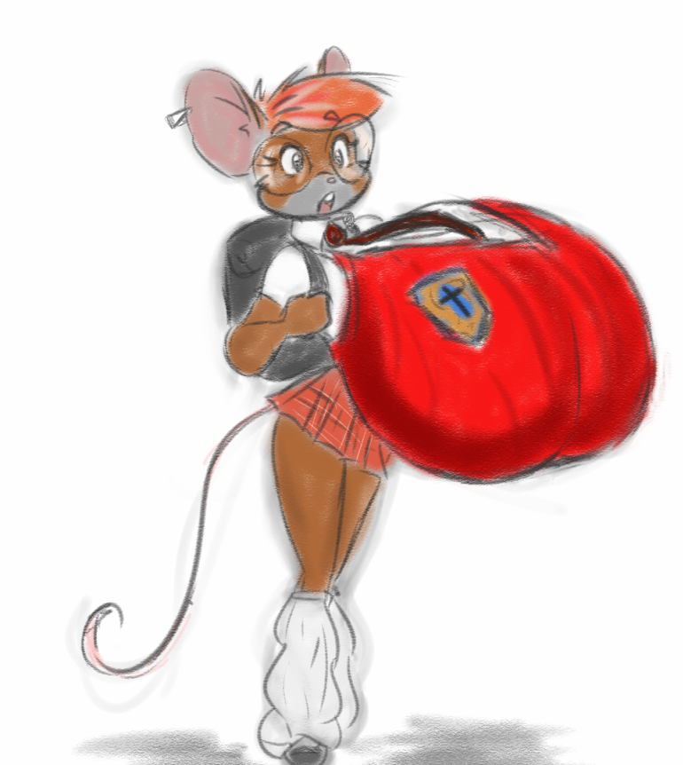 Joyeux Full Name: Joyeux Luch Nicknames: Jo, Joy Gender: Female Species: Mouse Age: 16 Personality: Intelligent, Absent-Minded, Impulsive, Well-meaning, Upbeat Background: The daughter of a pair of brilliant scientists, Joyeux has often attempted to follow in their footsteps and make her parents proud. Though fairly intelligent, Joyeux has often proven to be a little absent-minded and a little clumsy. She’ll get focused on her scientific thoughts and end up forgetting about everything else, like going out to get groceries and coming back with nothing but a new theory. She also doesn’t always think ahead about her actions when experimenting, which has not only lead to problems with property damage issues at the school chem lab but also brought her to her current situation. For a science fair, Joy was working with an experiment in aroma based stimulation based on the principle of aroma therapy. However, to spice things up, she went into her parents lab and grabbed a couple of chemicals which had interesting scents and that she believed weren’t dangerous. She began to mix them together and created an interesting gas which caused her to fall unconscious. When she awoke, she and her parents discovered the chemical compound Joyeux had inhaled caused her breasts to grow exponentially to a ludicrous size. With no current cure for her affliction and her parents struggling to find one while working on other projects, she is now dealing with the consequences of her exuberance and going through her daily life with gigantic tits, but is finding a silver lining in the attention she’s getting from her classmates.