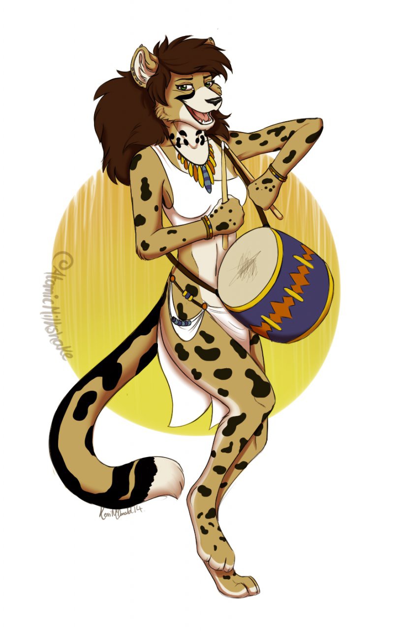 Meet my King Cheetah girl once again. She is the Drummer to Sixty's All girl Rock/Metal Band Vendictive. Her original Design; she was going to be Tribal, but Im still messing with her Character a tad bit.