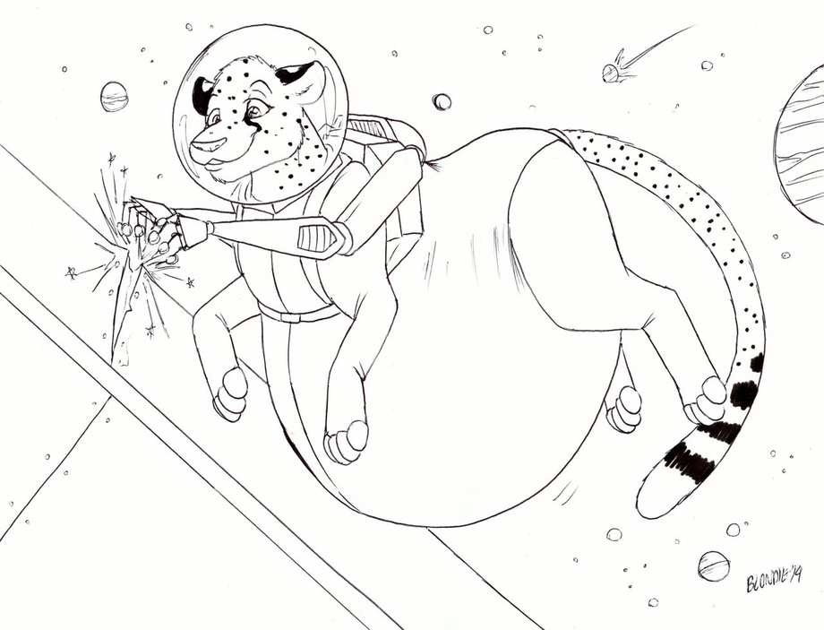 Partially inspired by the nifty early access game Space Engineers (check it on Steam), along with my general love with spaceborne ferals in sci-fi, here's one who is on an assignment to build something in an asteroid field.