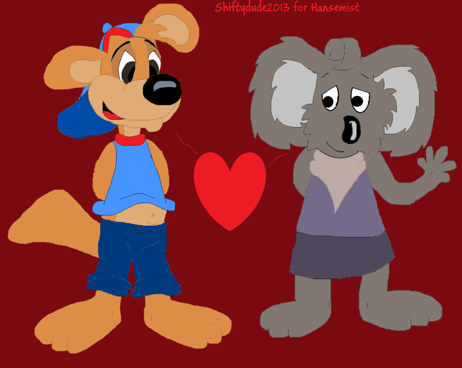 Here, we have Colt the Kangaroo boy from Adventures Of The little Koala on a date with Blinky Bill's stepsister, Nutsy Koala.