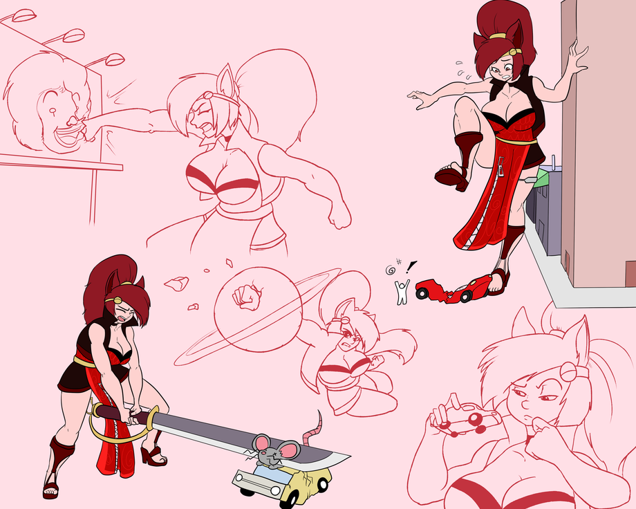 Lady Kera, dress adorned, foot gear cleaned and sword hidden but always at the ready for use, this femme fatal is ready