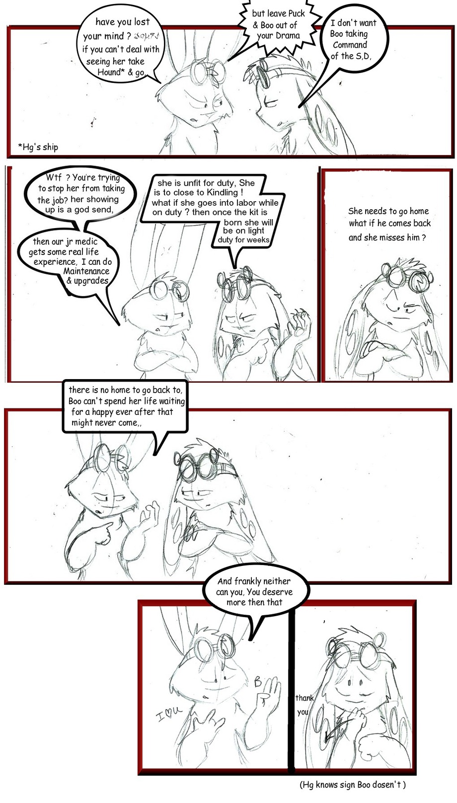 miss me? been very busy, Hg and Boo have history, Montigo knows about that history, they both love the same bear, Hg gave up everything so boo could have her happy ending, and Boo tossed it away, seeing boo upsets HG but she dosen't want boo to know this, fighting with montigo is a way to cover her emotional distress, Hg is a time (she is named after HG wells ;) ) and comic traveler see the link for her back story: in case it dosen't link right http://magicalmisfits.net/index.php?id=1360