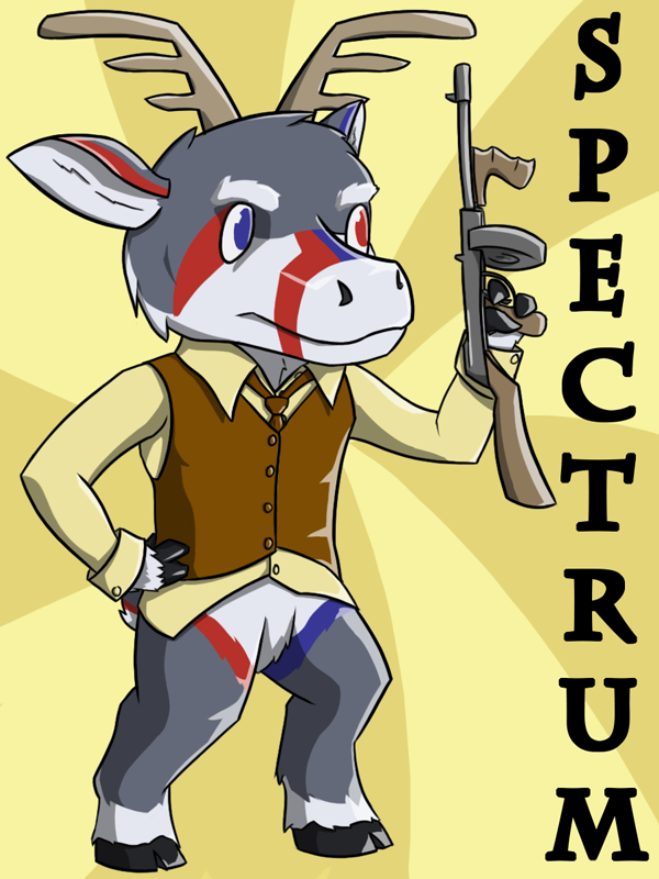 A long overdue badge for Taxi's character Spectrum. Another in the chibi fighting style, this time with an old time gangster outfit complete with tommy gun.