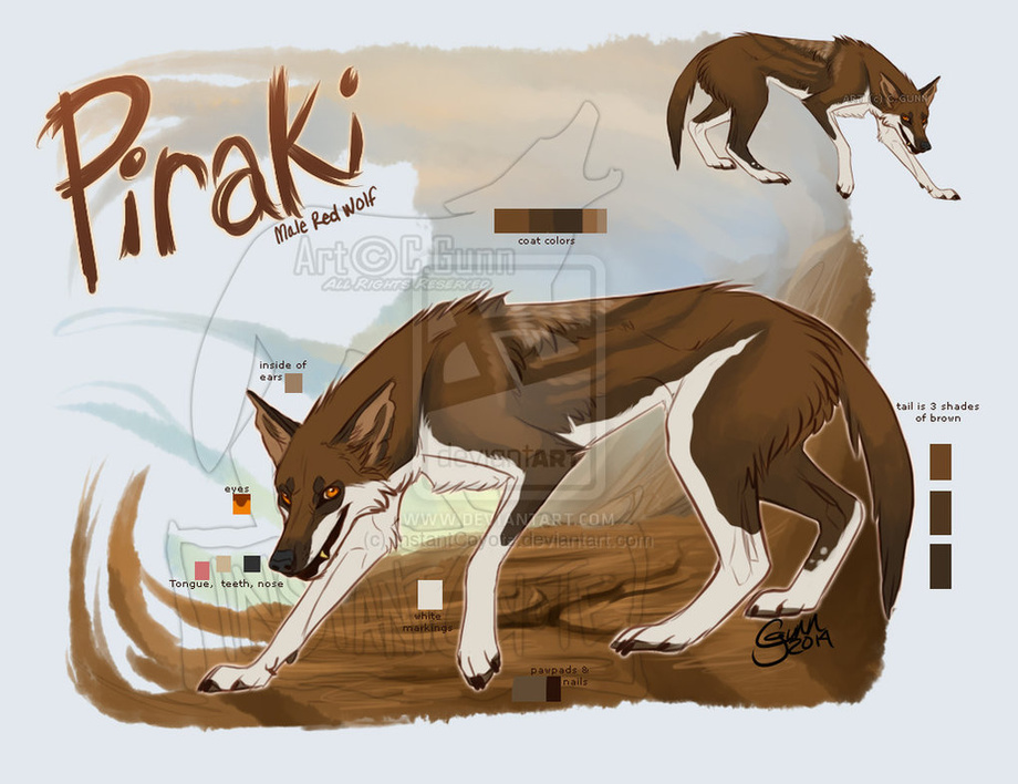 Piraki was my first online RP character, made in 2005. I don't know why but I recently decided that he needed a new reference and he really hasn't changed much at all. I just added the back markings. LOL.