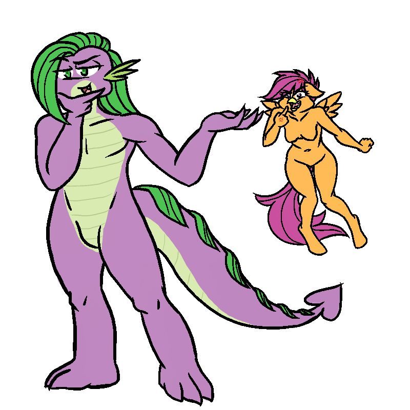 Spike: I don't know Scoots, this poison joke thing isn't so bad. You think Rarity will like my new look?