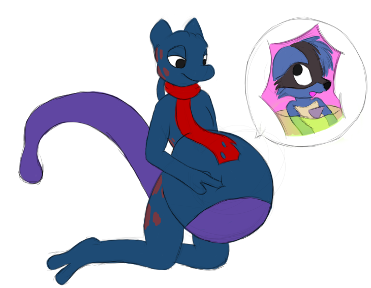 So Lucas decided he needed a scarf. Or was just looking for any excuse to nom the ever-tasty wyvernsage08 - and he's being a little tease by poking at his belly with him in there.