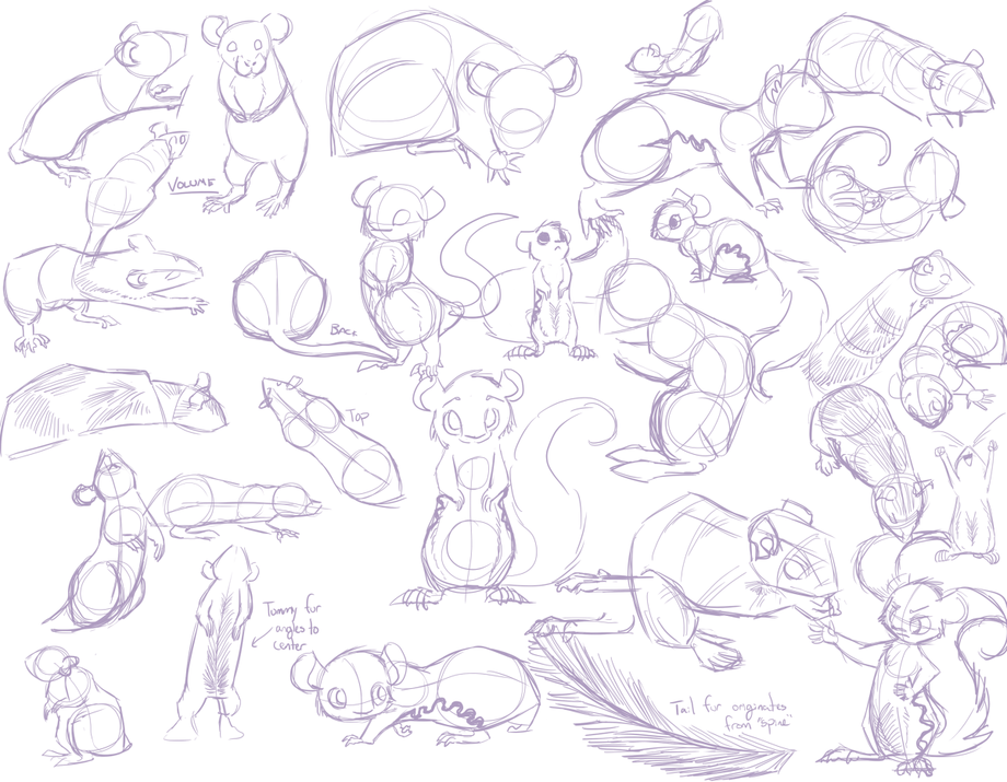Mouse-squirrels are a little bit of mouse, a little bit of rat, AND a little bit of squirrel! Here's some sketches I did to inspire ideas for what we might look like!