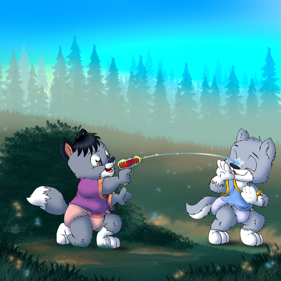 best art ever that pup on the left in the pink diaper is so chubby cute <.< >.>