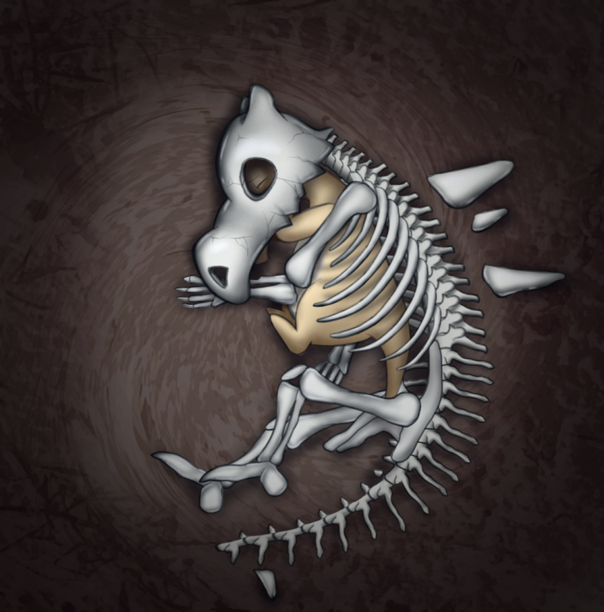 I got inspired from stegosauruses' skeleton formation for the spine, the pelvis and the rib cage, while the limbs mostly came from human anatomy. Despite having spent so much time on it, there is only so much I wanted to do at first that I ended up not doing. I wanted the skeleton to be more circular, much like a spiral, around the cub... Some bones are too thick, some are too large... Etc.