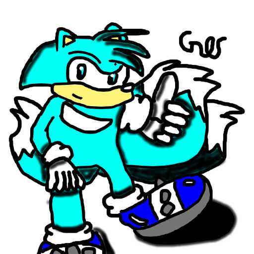 Peace is a Hedgefox with 3 tails, almost similar to Tails. He is cyan colored, and has spikes on his shoes. His shoe color, on the base and tip is blue, white in the middle alike Sonic. Peace has cyan bangs, like Tails once again, and gloves like Sonic once again. Peace only has one cyan quill unlike Sonic who has 3 blue quills.