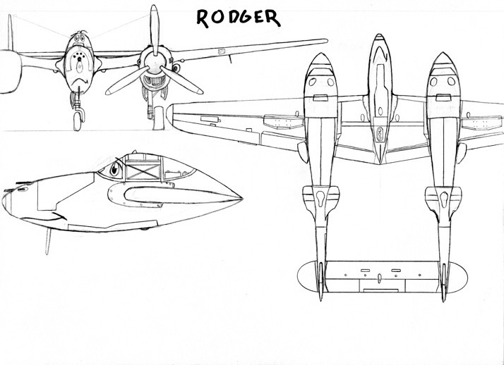 When Rodger was delivered to the front, he and his flight wing of four other P-38 were given to inexperienced pilots. During a training flight the pilots ran into german forces, thus tried to flee from danger. The pilots who weren't used to the tricycle style landing gear of the lightnings ended up crashing all of them. The majority of the aircraft were lost, except Rodger. During the next few months they managed to rebuild Rodger with the parts salvaged from the other planes. More on his backstory with another picture.