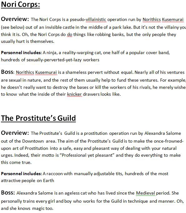 The second piece is a document I'm writing with the side descriptions. It's not finished (obviously)