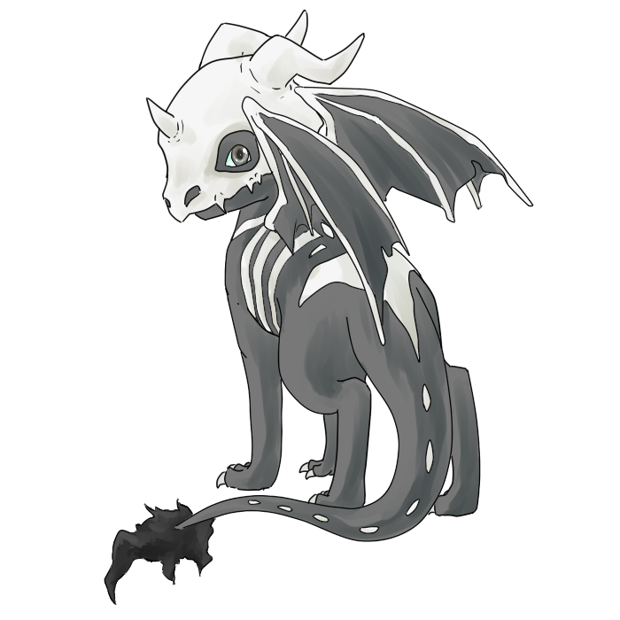 "A reptilian beast suited to hunting in arid wastelands, it is suited to the lifestyle of an ambush predator. Its dark hide draws little attention in darkness or against rocky, mountainous landscapes. However, the Bonekeeper gets its name from the seasonal white patterning across its skin and its habit of hiding among the skeletal remains and carrion in the hopes of ambushing anything that happens to wander past. However, the Bonekeeper dragons in this area pose little threat to humanoids as their preferred prey are ungulates." --Cnámh Mountain Field Guide