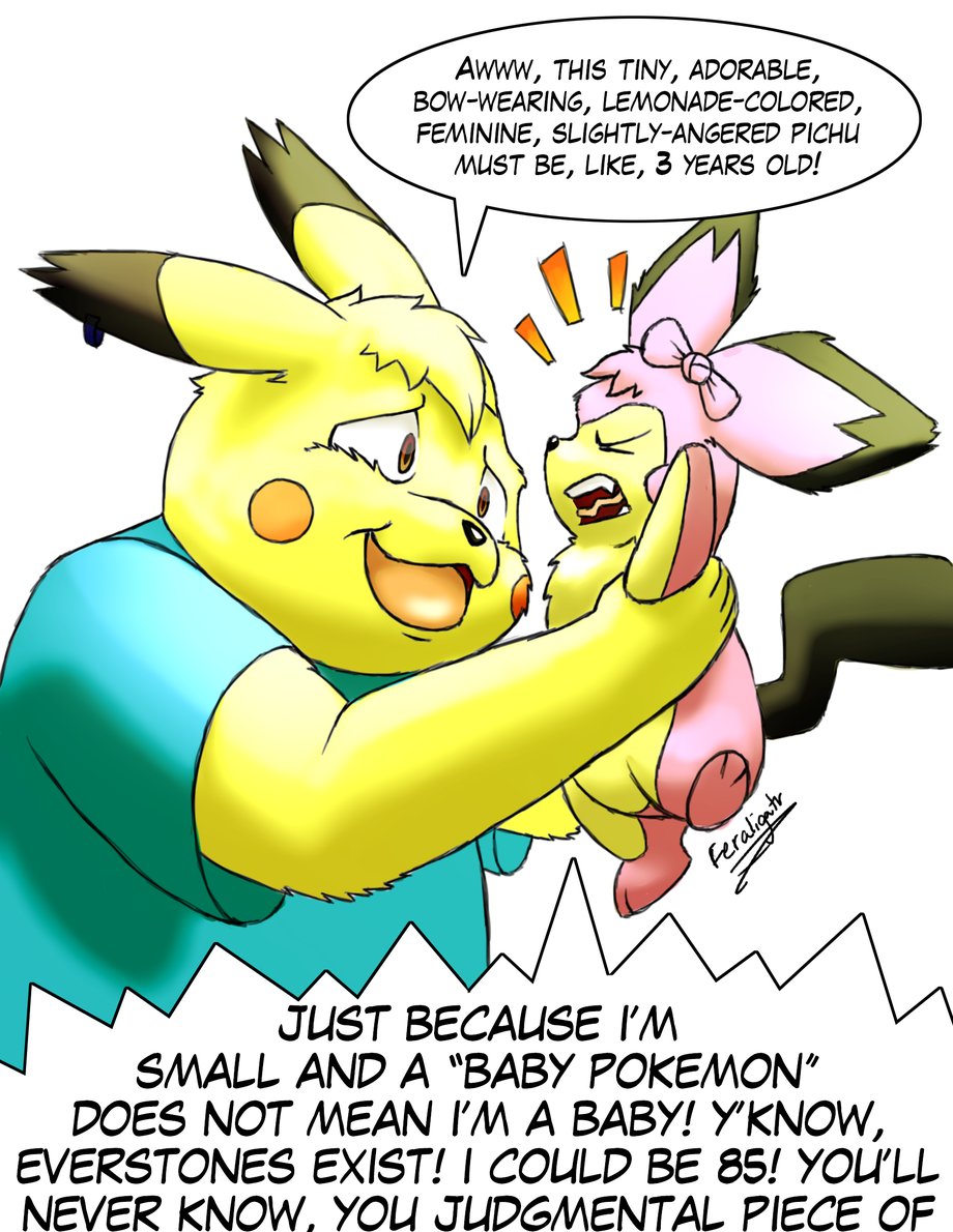this commission was inspired by 2 dicks being well..dicks and saying my pichu penny could not be an adult just because she is a pichu. XD