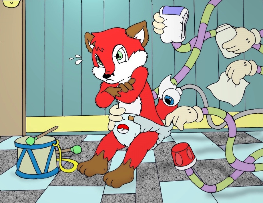 Little Foxy was playing with his little drum, when suddenly an alarm sounded! The machine called "All in 1" has a new device that detects if a cub needs a diaper change!