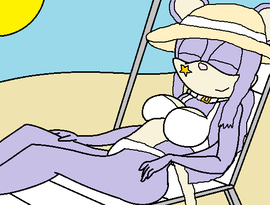 Sharon relaxing at the beach at her home Penadise. She loves the beach more than Pokemon Training, but Training comes first.