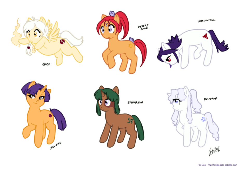 My male Zelda OC crew (minus Elon because he appeared in the previous pic, and Taj because I ran out of room). As ponies. With pony names.