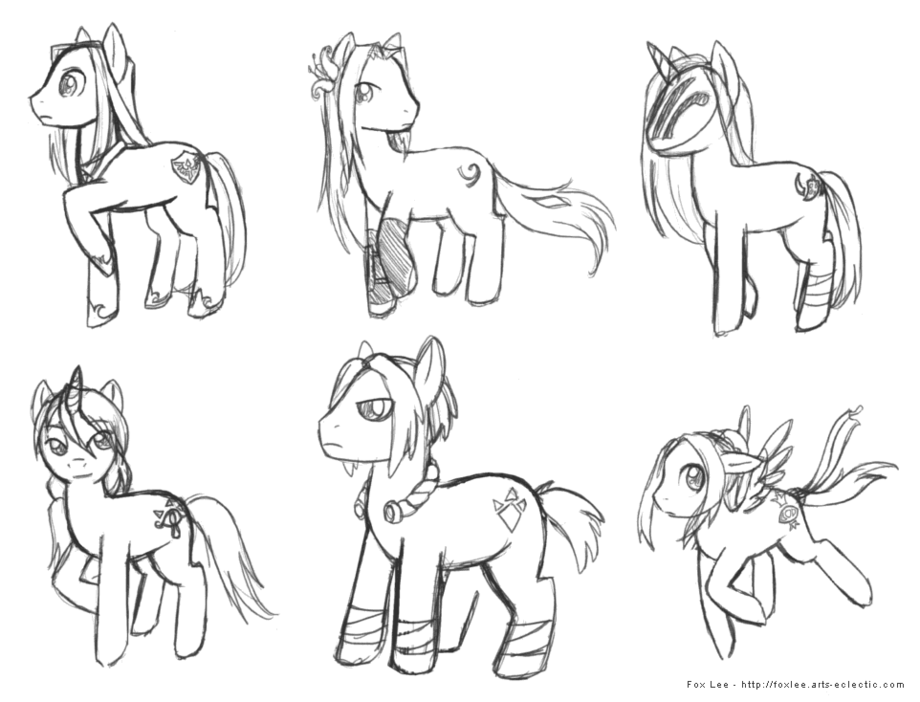 There is some debate as to whether Fallow should be a unicorn (he's magical but also totally should be called an earth pony) and really Ruhtin shouldn't get to fly, but I wanted some variety and darn it, you can't name a pony Skystrider without wings >:<