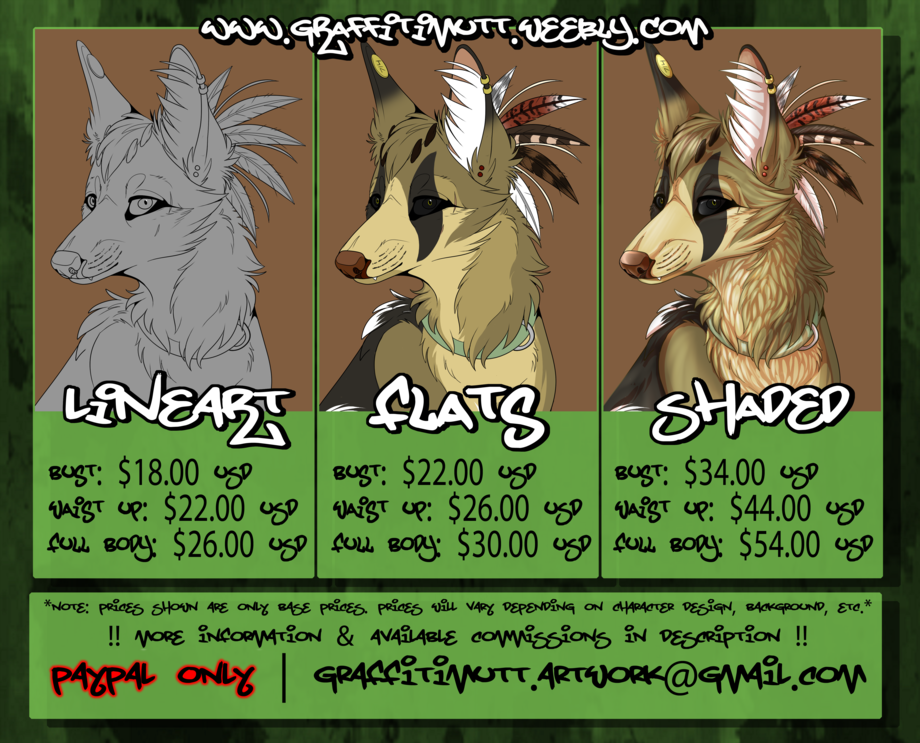 ((Keep in mind this website is still being updated so prices are outdated if you would like to know the price a specific type of drawing that is not listed here send me a note with the subject saying "Commission Quote"))