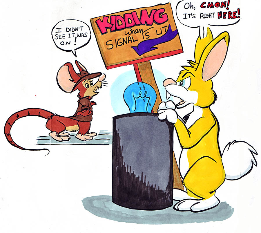 The humor light is blue. Even though it is not the Trouble Light, and doesn't go off-on-off-on, thus flashing, and is not on a space station, the Humor Light is awesome!