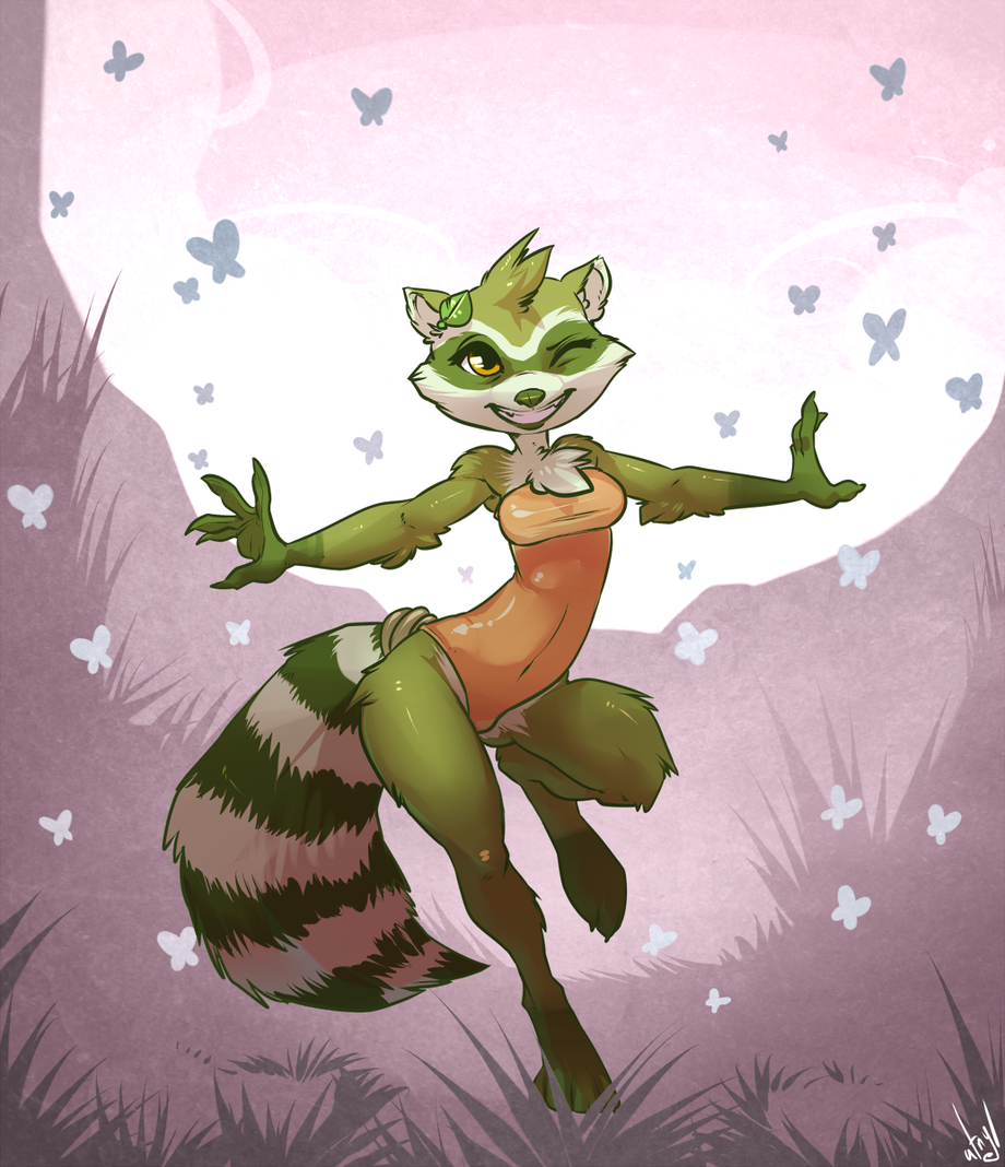 How adorable! Dancing raccoon in the moonlight. Nice tight swimsuit, I wouldn't mind seeing her outs