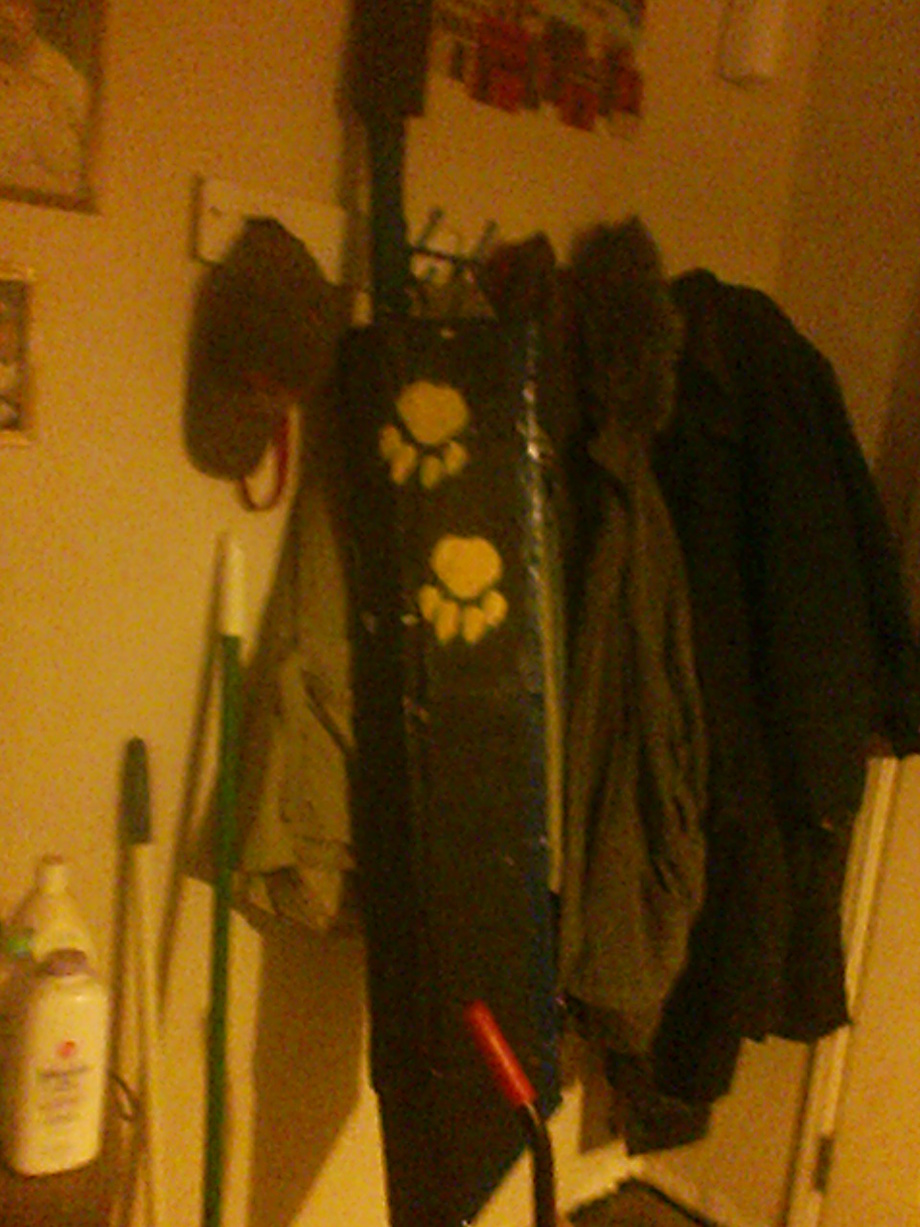 yeah this came out nice, Uses magnets to keep it on my back. ~ Things I learned though was Spray paint foes NOT stick to Duct-Tape, I need to Round my Metal place so it keeps from sliding.