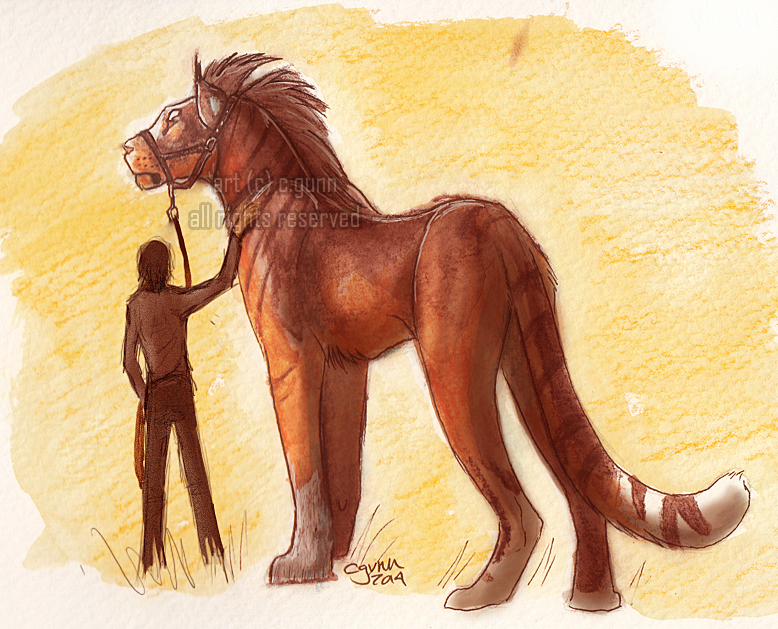 Obedience training for Wrath of Vesuvius. Watercolor pencils because it was hot whenever I drew this a couple weeks ago and didn't want to turn my computer on to make my room hotter. ^_^' Different handler, though. I felt bad for giving Will a million shedus, so Vesuvius' handler is Dare. Tall cat is tall.