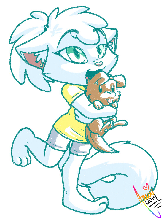 Just a little 5am doodle of a very little Suni holding a puppy.