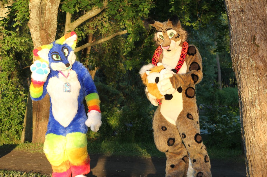 The tall kitty is me, the cute rainbow fox is Tinka, and the photographer was Miststalker. Thank you to both!