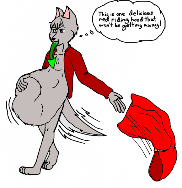 Not too much to say beyond this is based on what he asked for! Gotta wonder if these wolves just have piles of red hoods in their closets or something. Well, aside from this one. Just getting tossed on the ground like that.