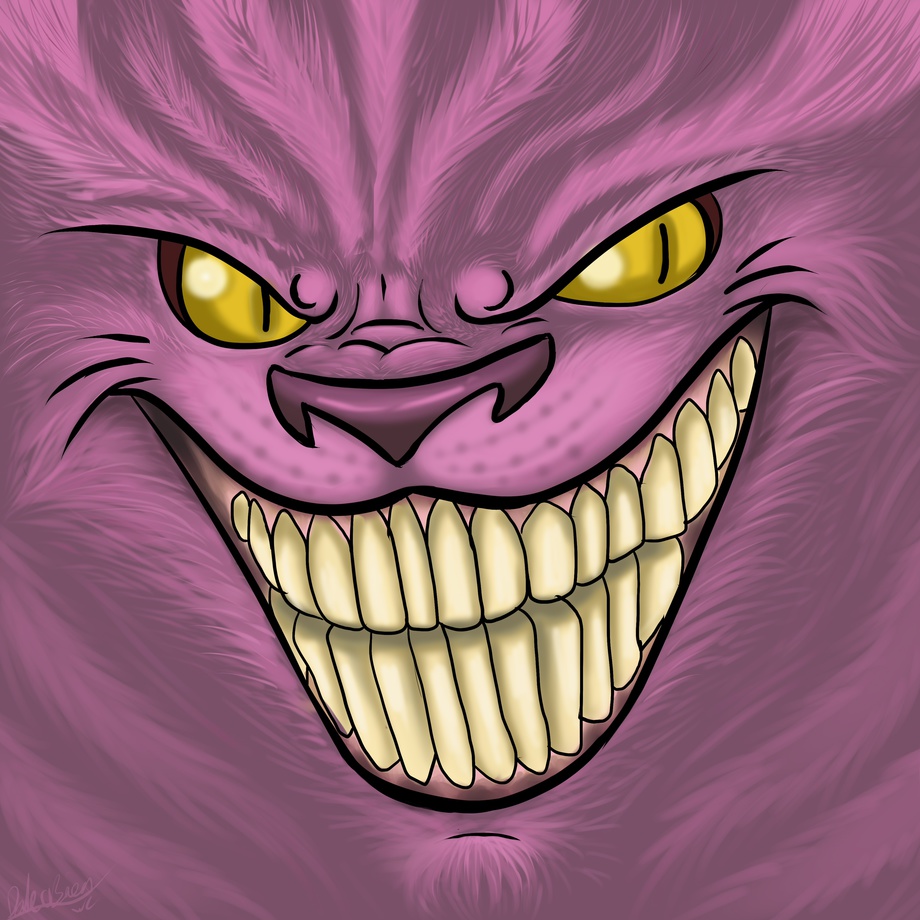 DAAAAAAAAAHHHHHHHHH!!!!!!!!!!!!!!!!!!!!!!! oh good god that scared the stuffins out of me but it is freakin awesome I love that cat in alice in wonderland you know this woud be a good thing to put on one of those computer screen pranks where you get prankee to stare at the screen then have this face pop up. you did a fantastic job on this