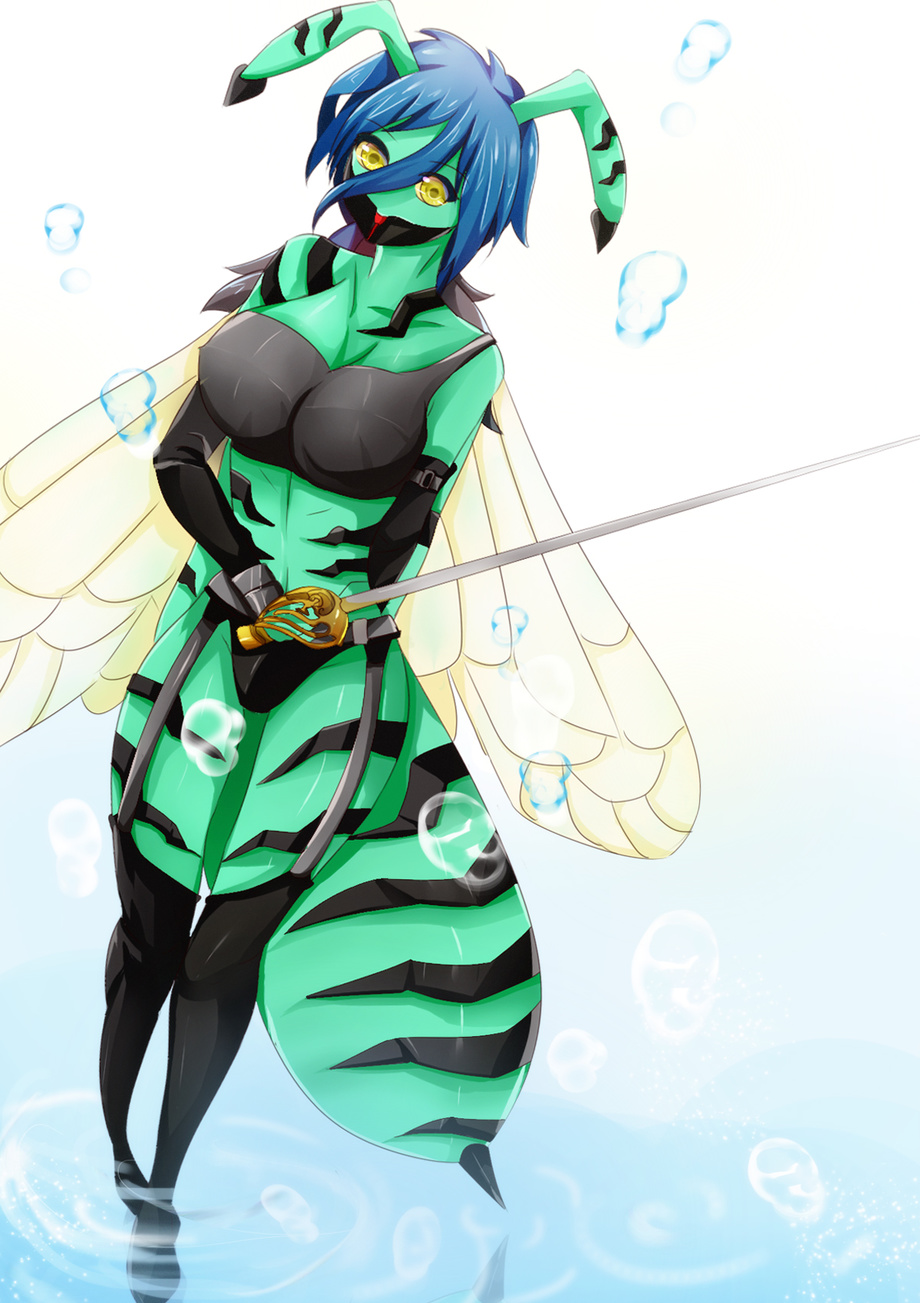 A commission that i got from Avaloki from DA. Its a pic of my hornet girl Wisp and obviously someone has entered her territory without her permission. why else would she have her rapier out?