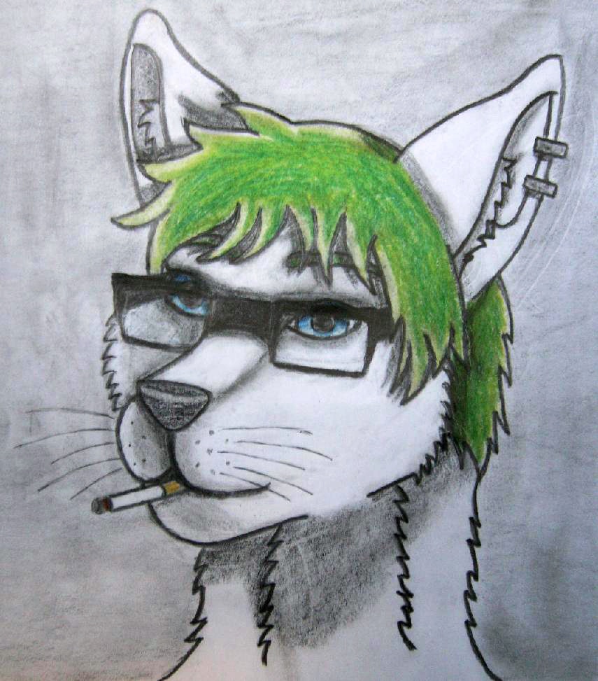 I did this headshot for @ForthrightAgonizingFox. I thik I messed a bit up with the angle from the glasses to the eyes and the cigarette may be a bit to small.