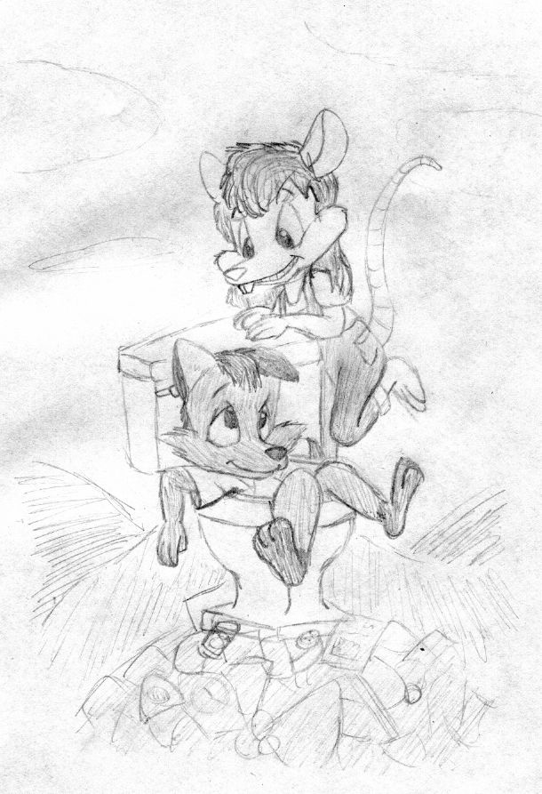 Here's my two little dump-dwellers frolicing rambunctiously on a warm summer day. I love how this one came out. It's a great feeling when you can perfectly capture the personality of a character you've created.
