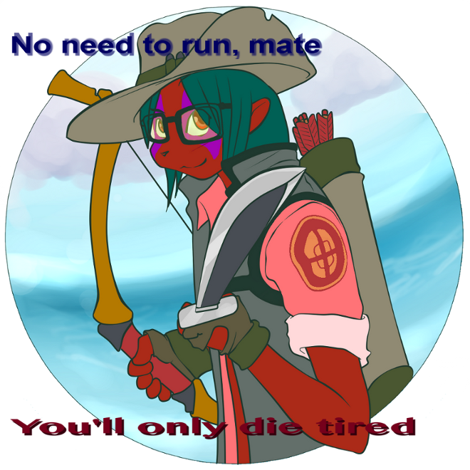 I was just tripping though my old gallery when I noticed an old old spray I had done and remembered that almost a year ago I redid it, and so now I'm posting it! Me as the sniper from TF2 with my favorite weapon --= The bow~!=--