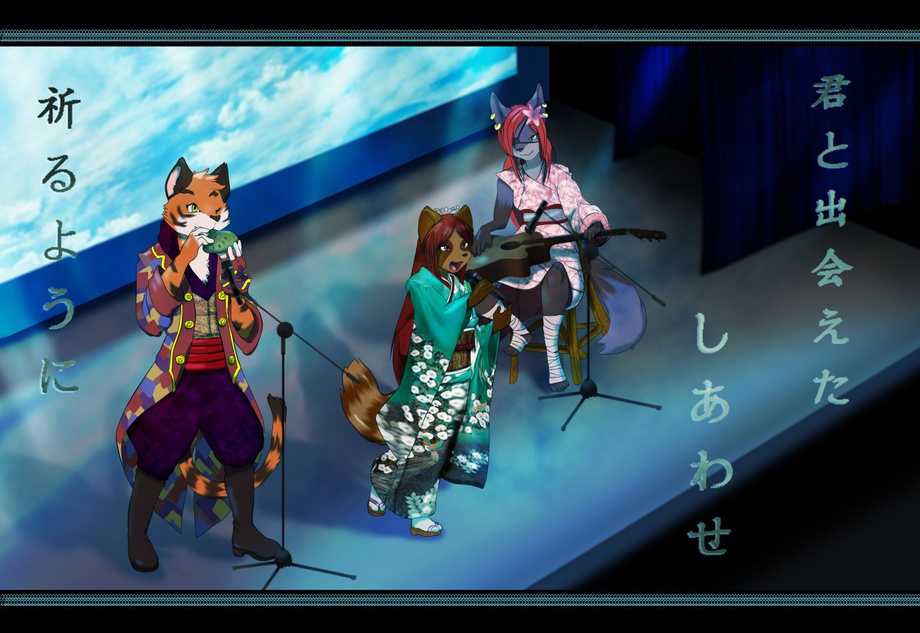 In a more peaceful time, Verse, Chiharu, and Volbrin perform a live concert together. A simple accompaniment lays the background for a simple tune. Where once three unlikely warriors stood together in harsh winds, shaken by the fates and beaten by the gods, three performers united by a flowing tune as free as the wind release their souls to serenade all who would listen to the sweet melodies of peace.