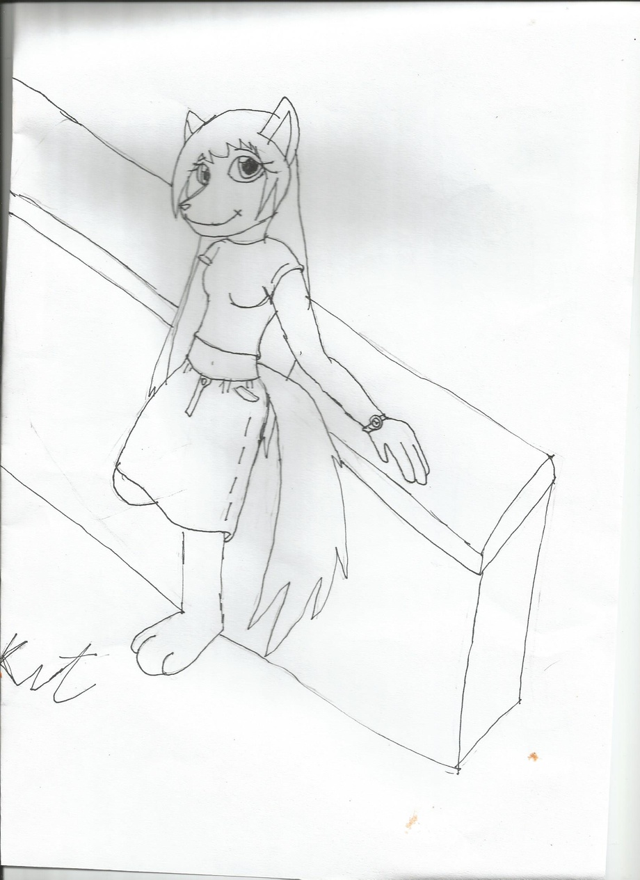 She's slender with gray fur and B cup breasts. Nikki stands 5'3" and won't share her weight, however she's fairly fit. She has long chocolate brown hair that goes to just past her long bushy tail. Her eyes are dark blue.